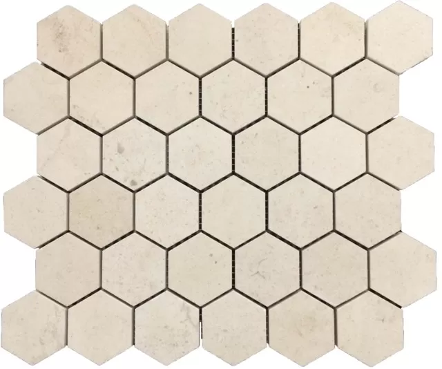 Looking for a premium mosaic tile from the USA? Chateau De Sable Hexagon is a great choice! Chateau De Sable Hexagon tile is manufactured by the well-known Elon Tile & Stone brand and it’s a notable element of the Chateau De Sable collection. Ideal for interior use, these top-tier mosaic floor and wall tile is perfect for elevating a variety of spaces, including basements, bathrooms, and kitchens. In a classic beige color and available in size 10.5x12, this tile showcases its versatility with a stunning honed finish.